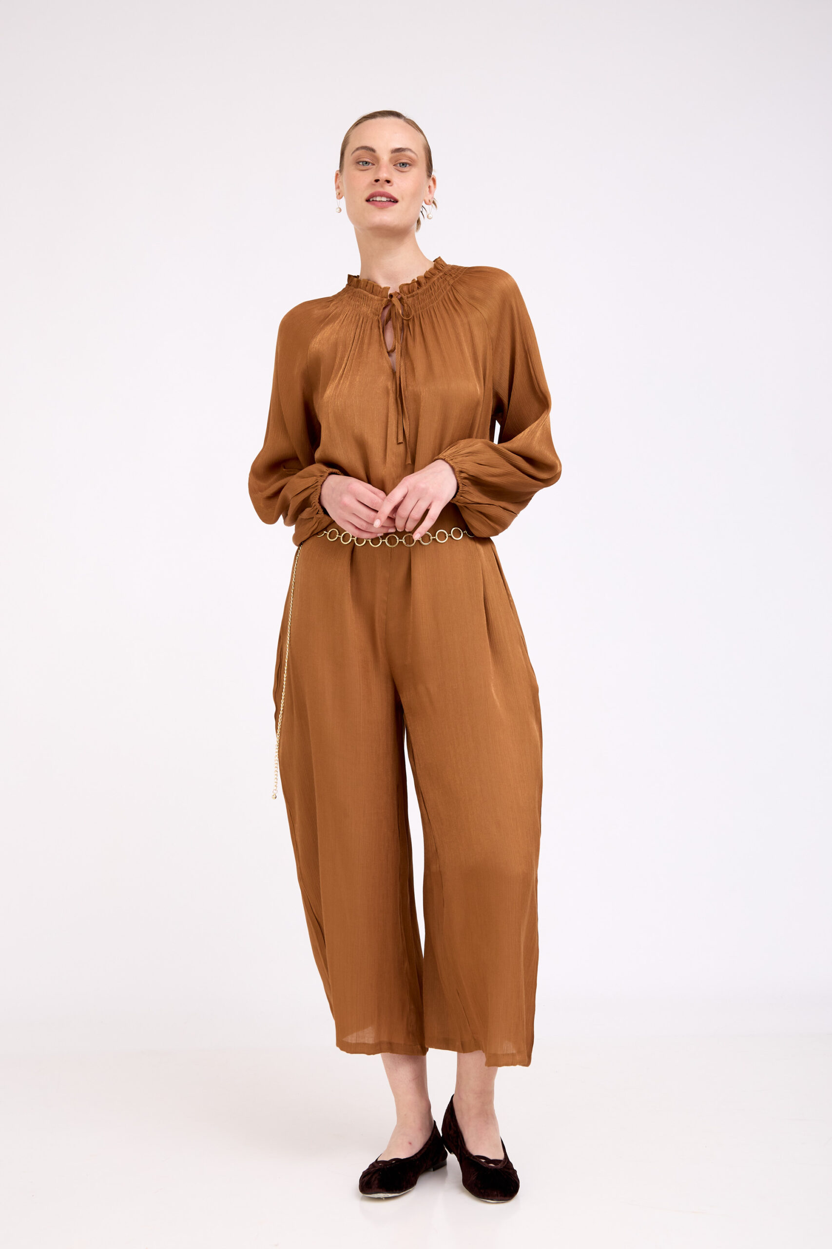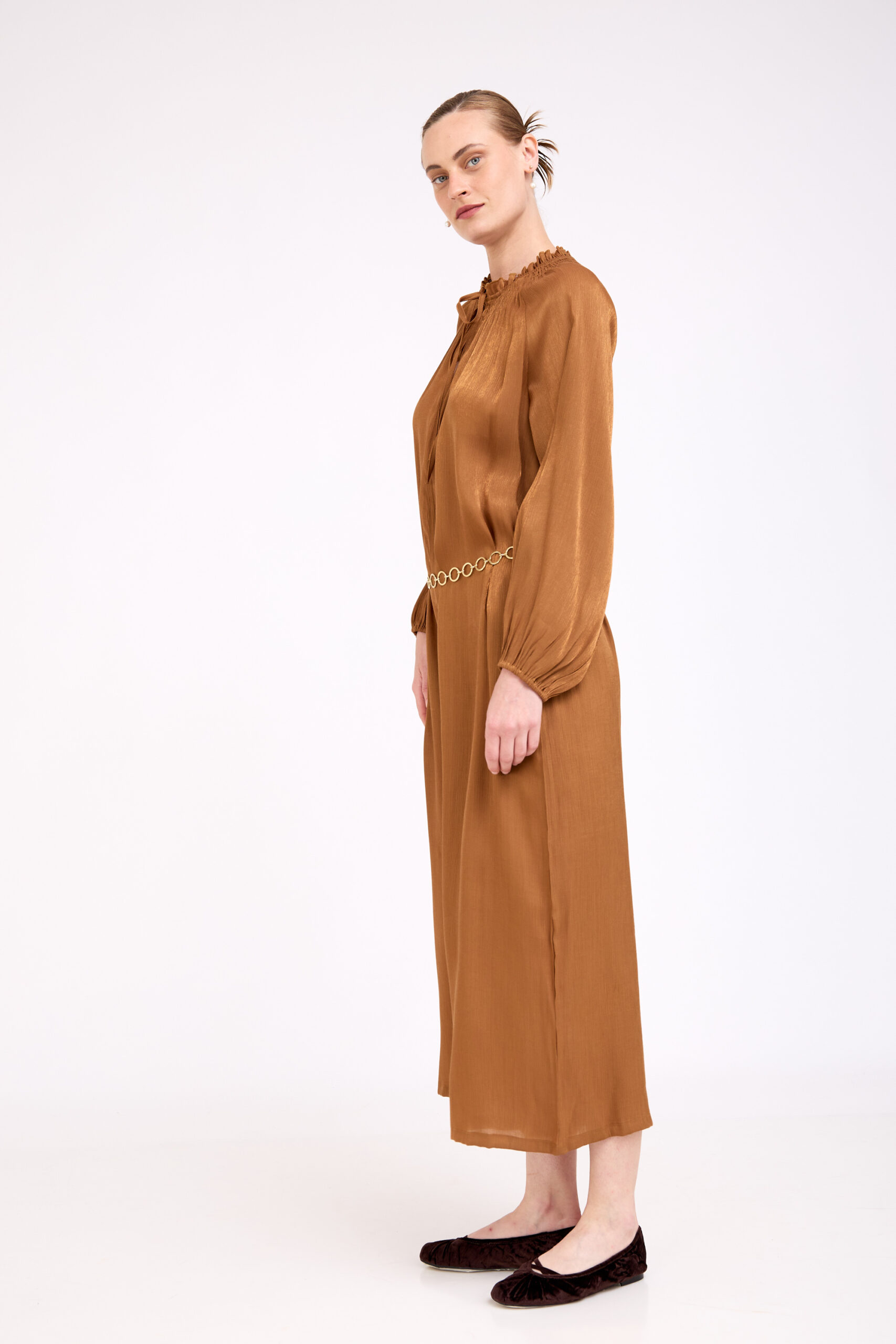 וצווארון כיווץ עדין עם קשירה המשלימים מראה חגיגי ונוח.