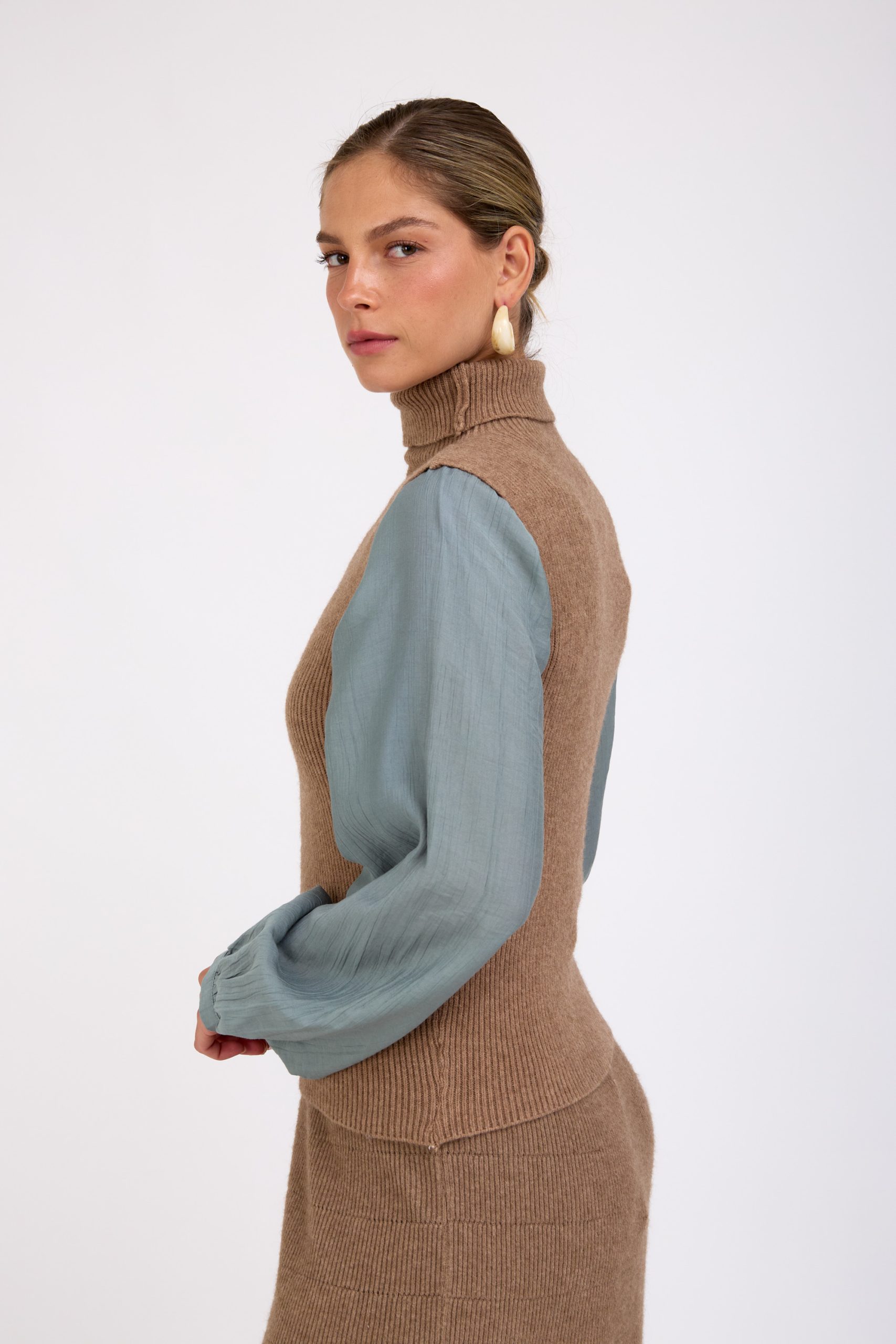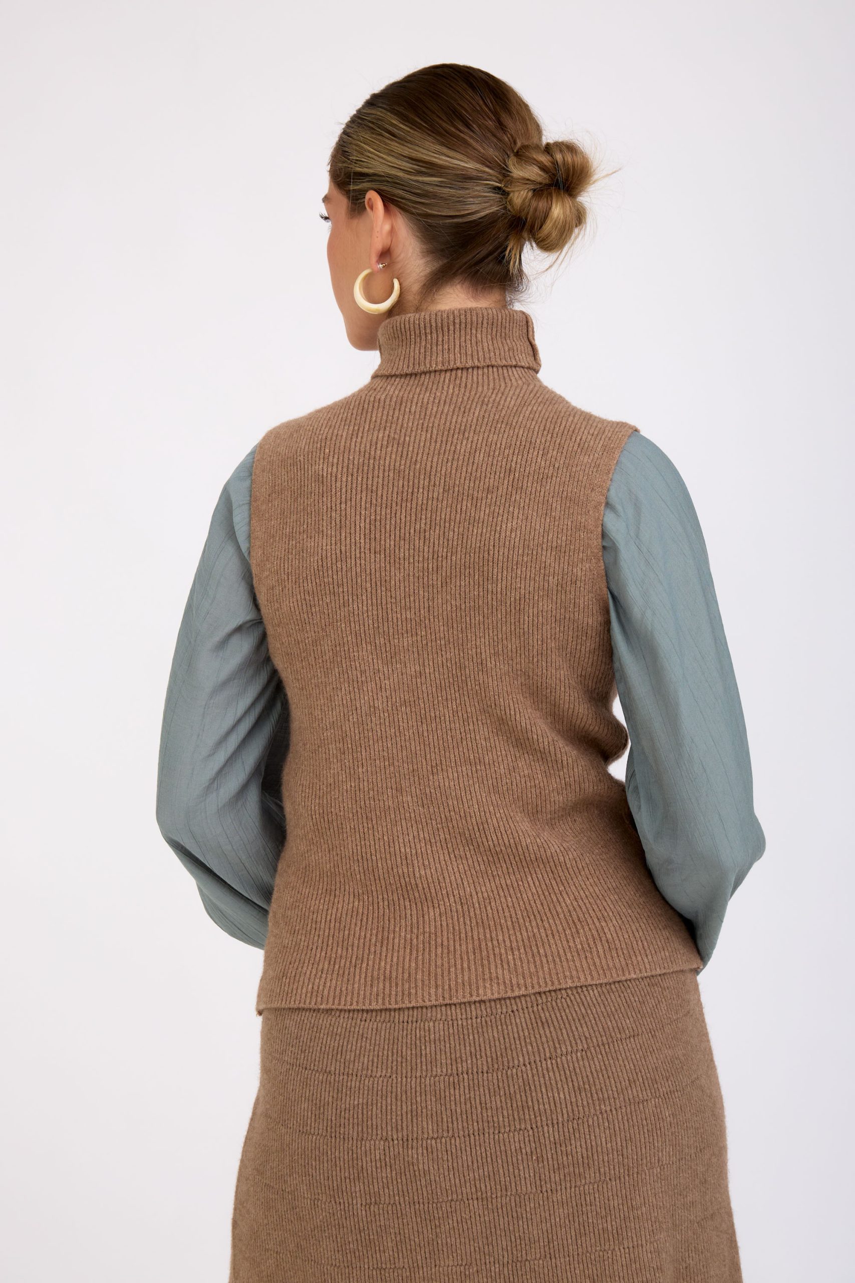 אפודת גולף גבוה בסריג רך ונעים- למראה חורפי נקי עם טאץ’ יוקרתי. (מתאימה לסט תואם חצאית או לשילוב חופשי)