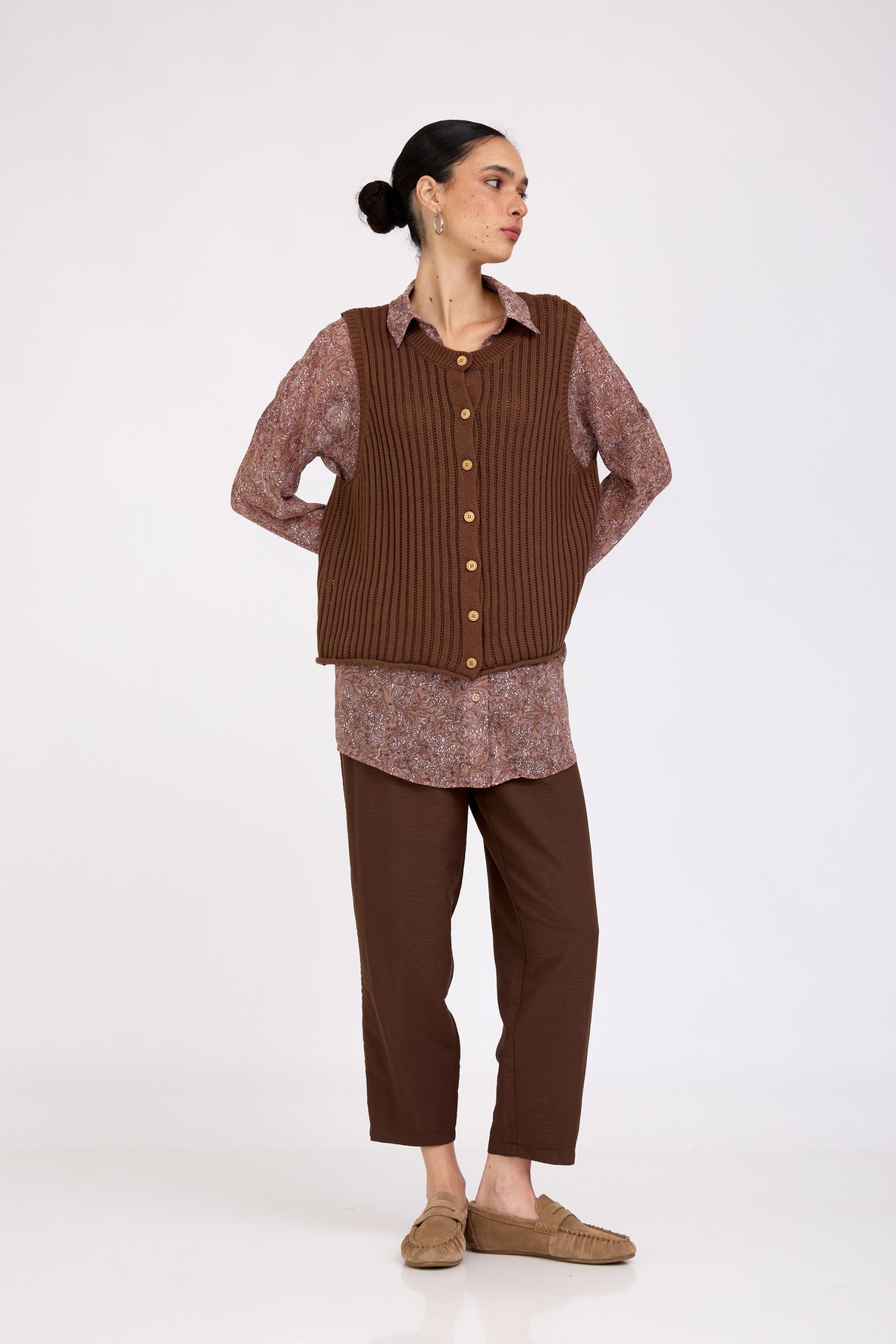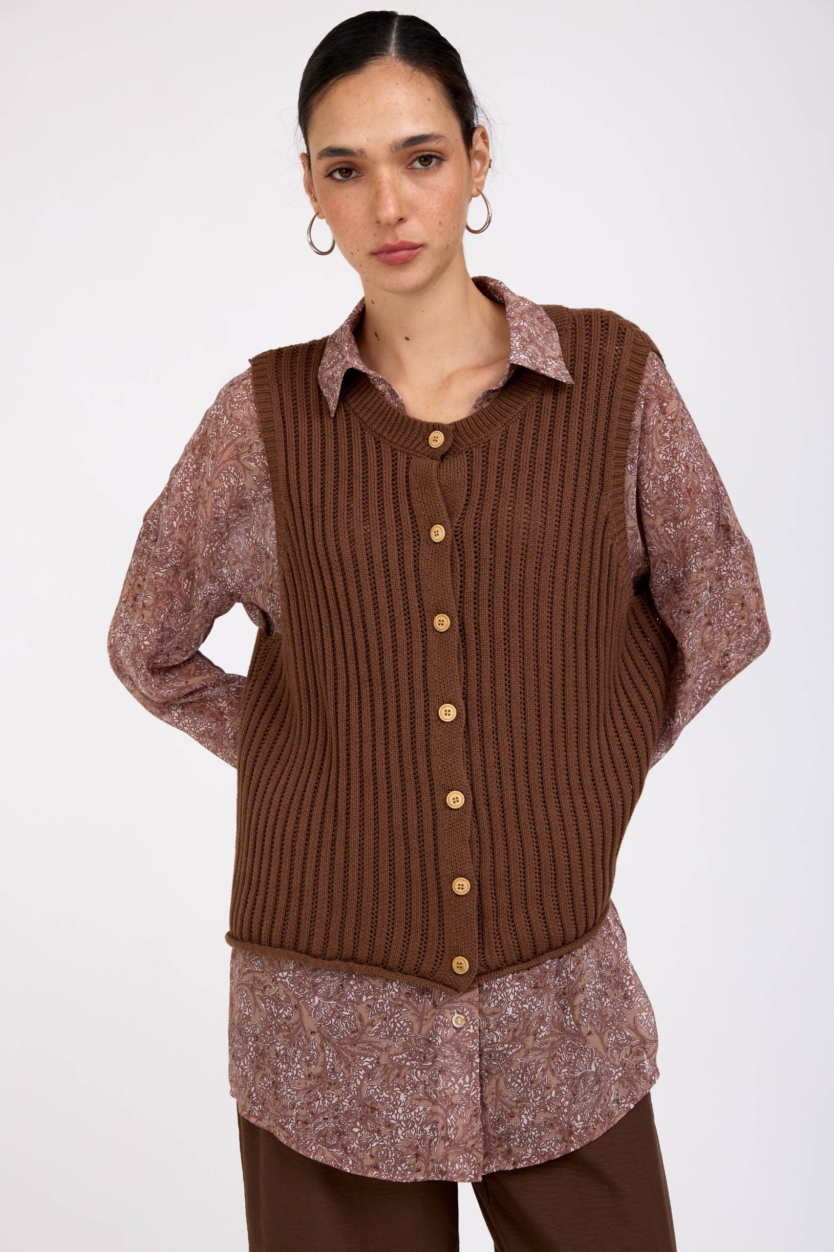 אפודת סריג עם כפתרה מלאה- להתאמה מושלמת כפריט עליון או כשכבה מעל חולצה. ללוק אורבני זורם!