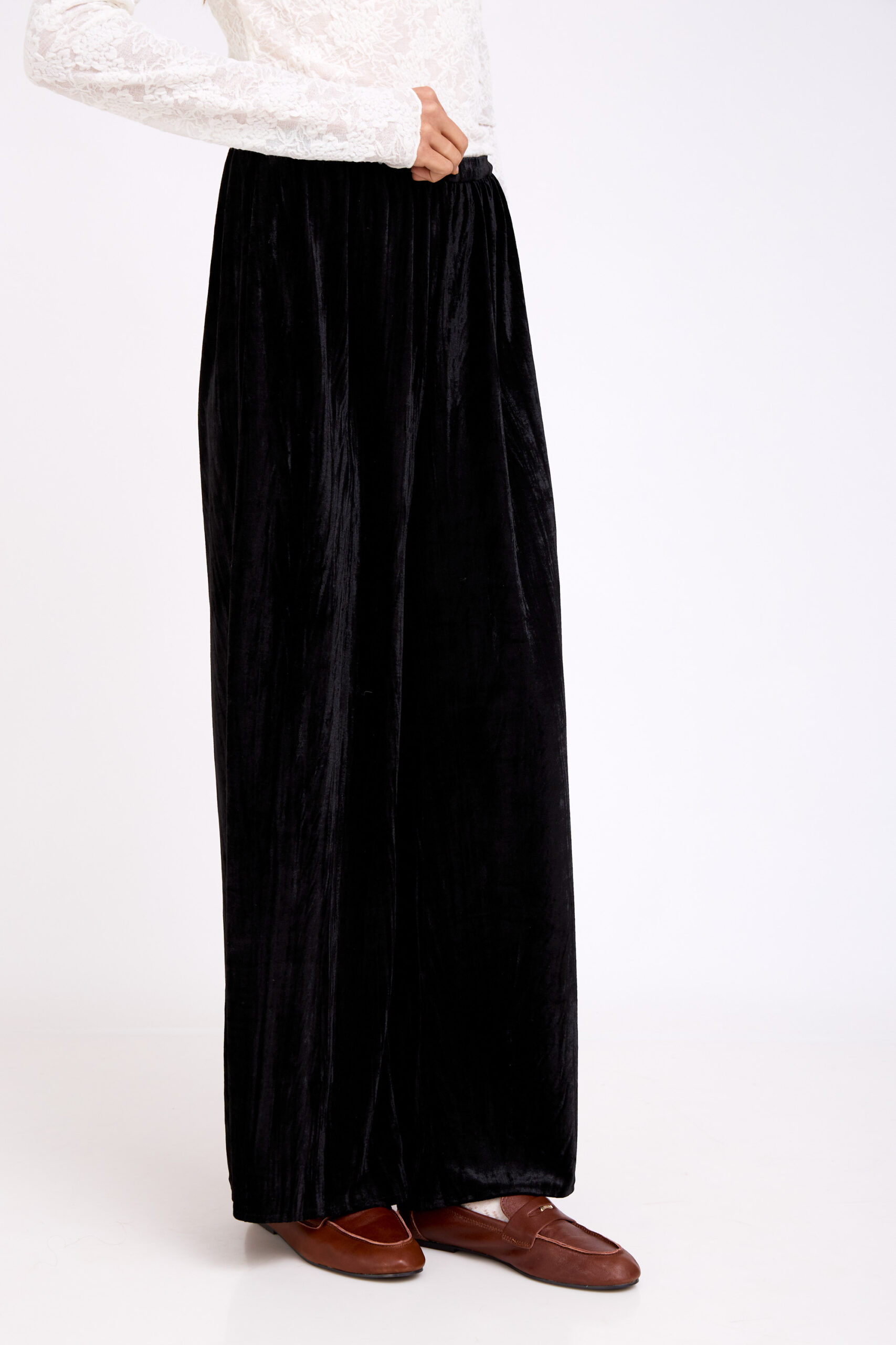 מכנסי קטיפה רכים ונשפכים בגזרה רחבה ומחמיאה,
