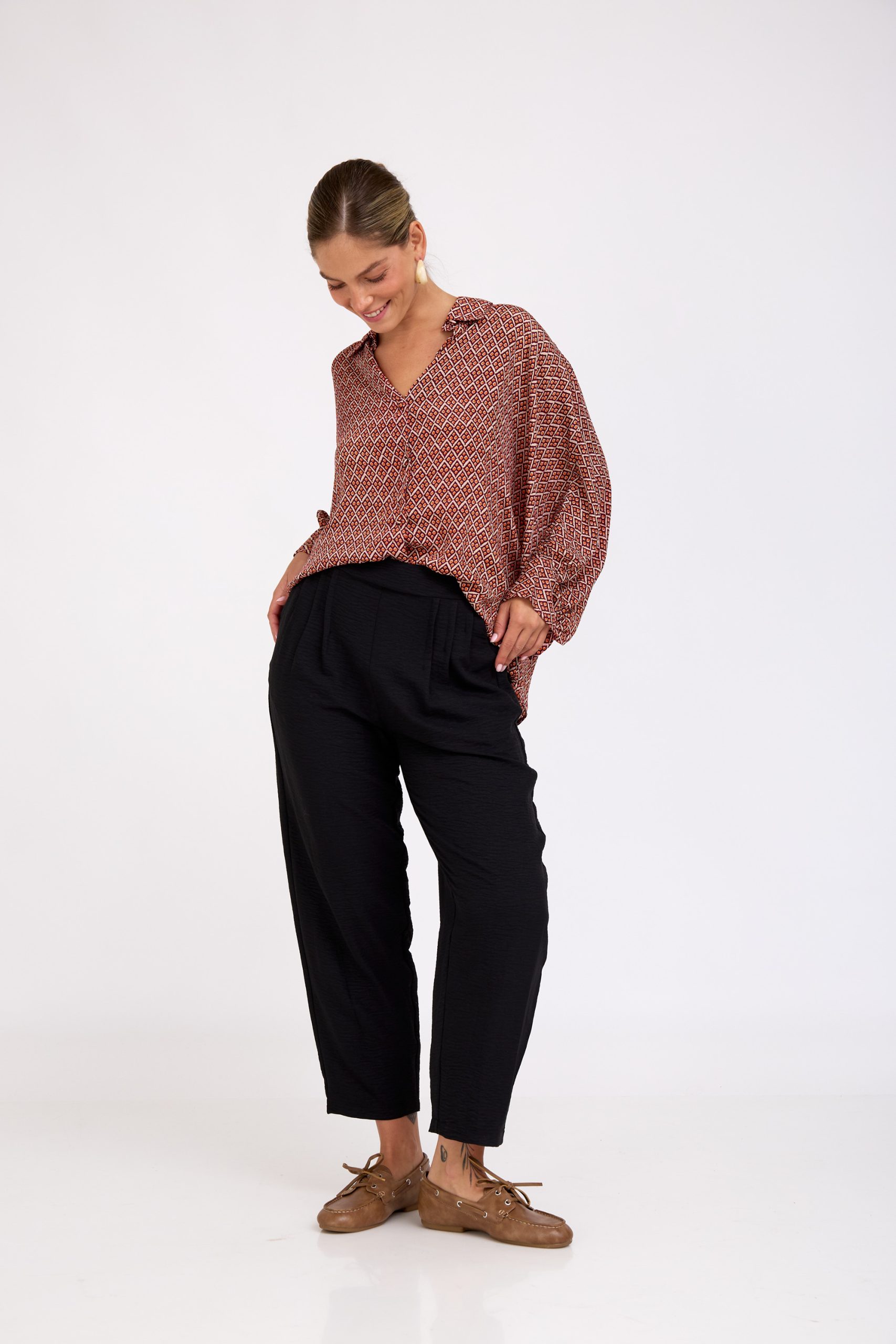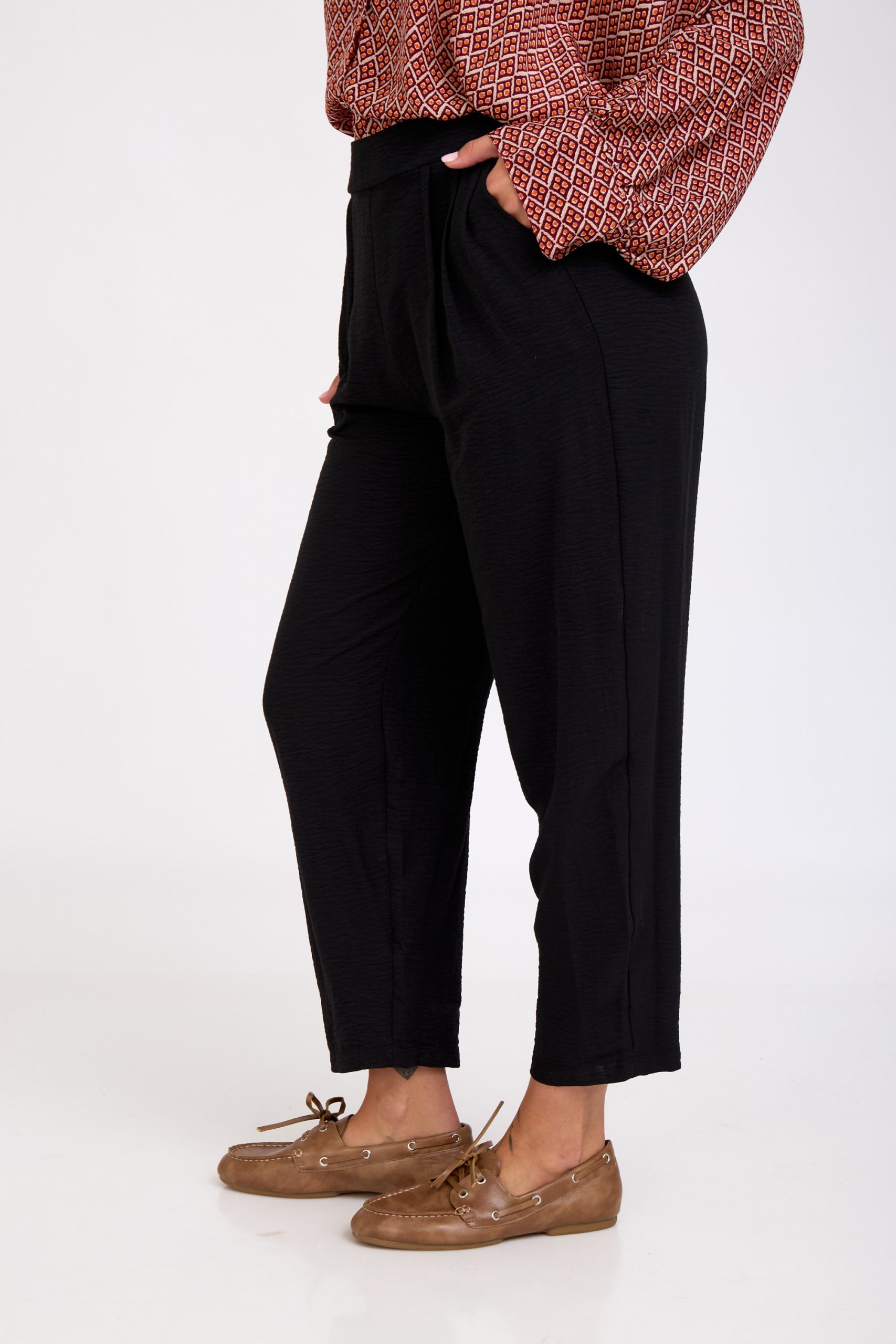 הגזרה האלגנטית והבד הנעים יוצרים מראה מוקפד עם תחושת נוחות מושלמת. המכנסיים השחורים שאי אפשר לוותר עליהם!