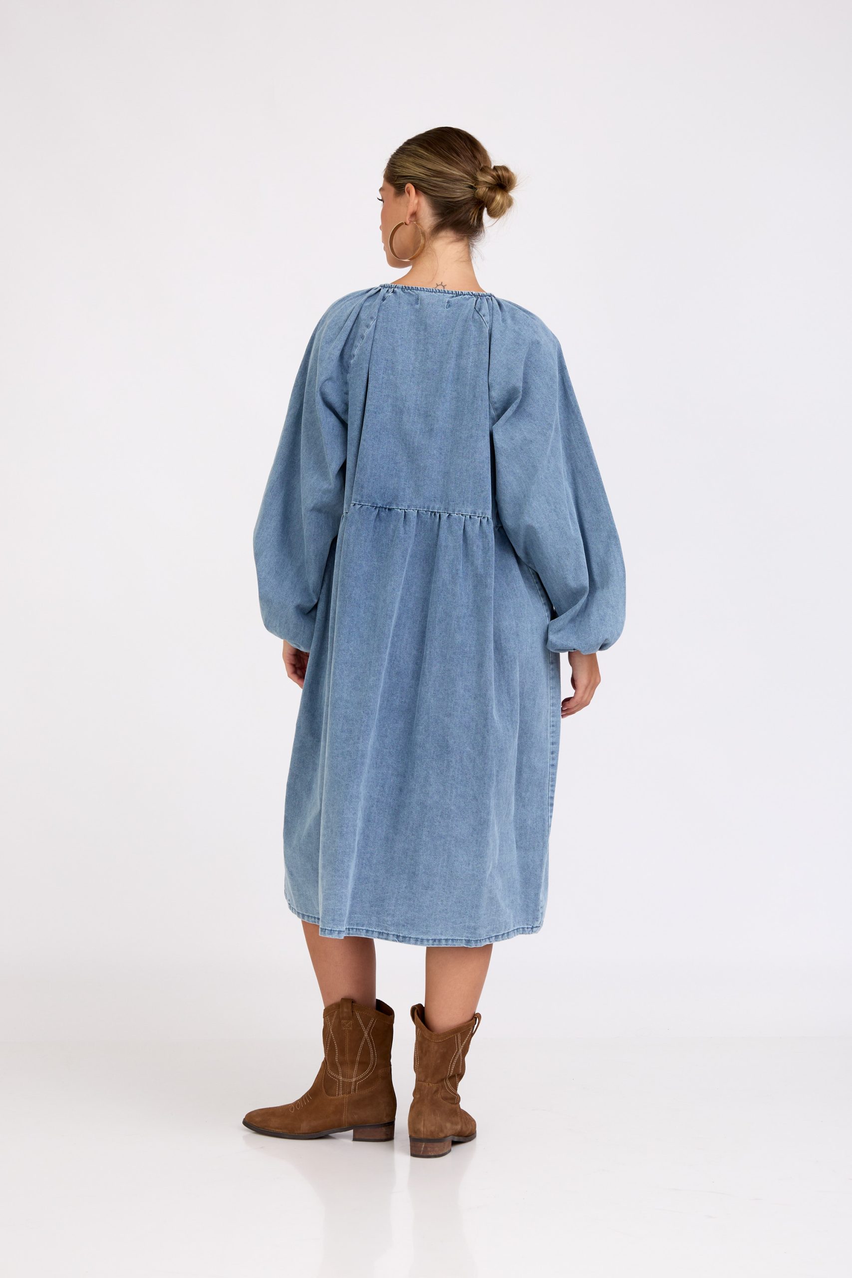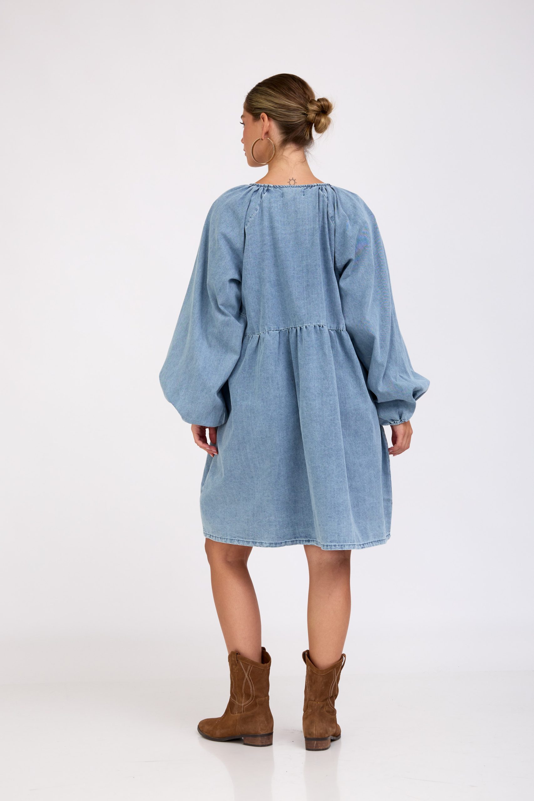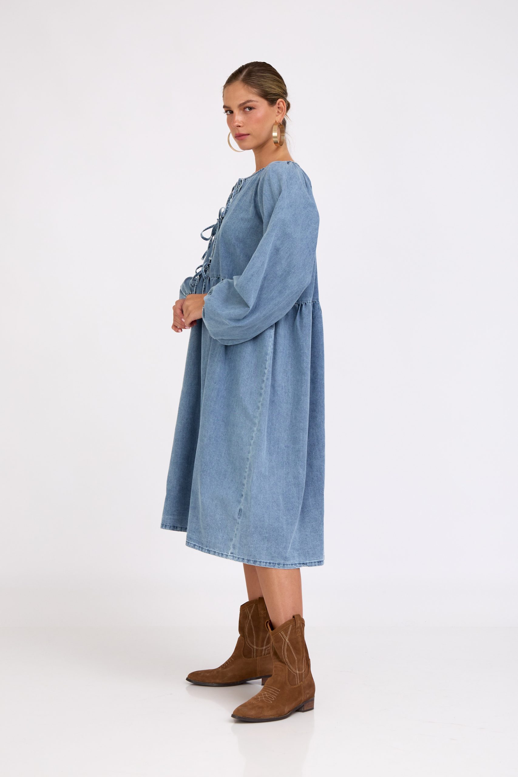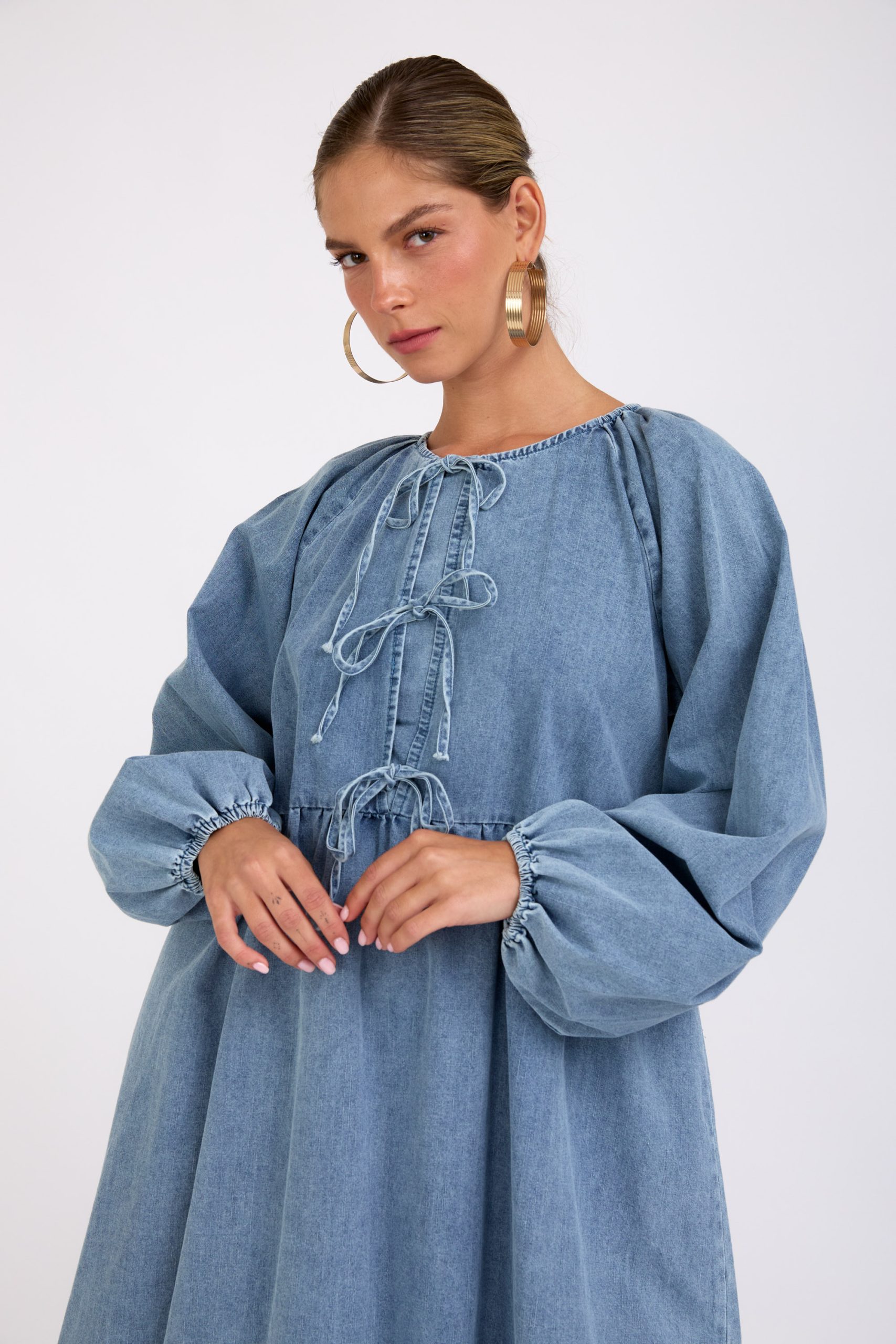 לשמלה שלושה שרוכים לקשירה רומנטית מלפנים.