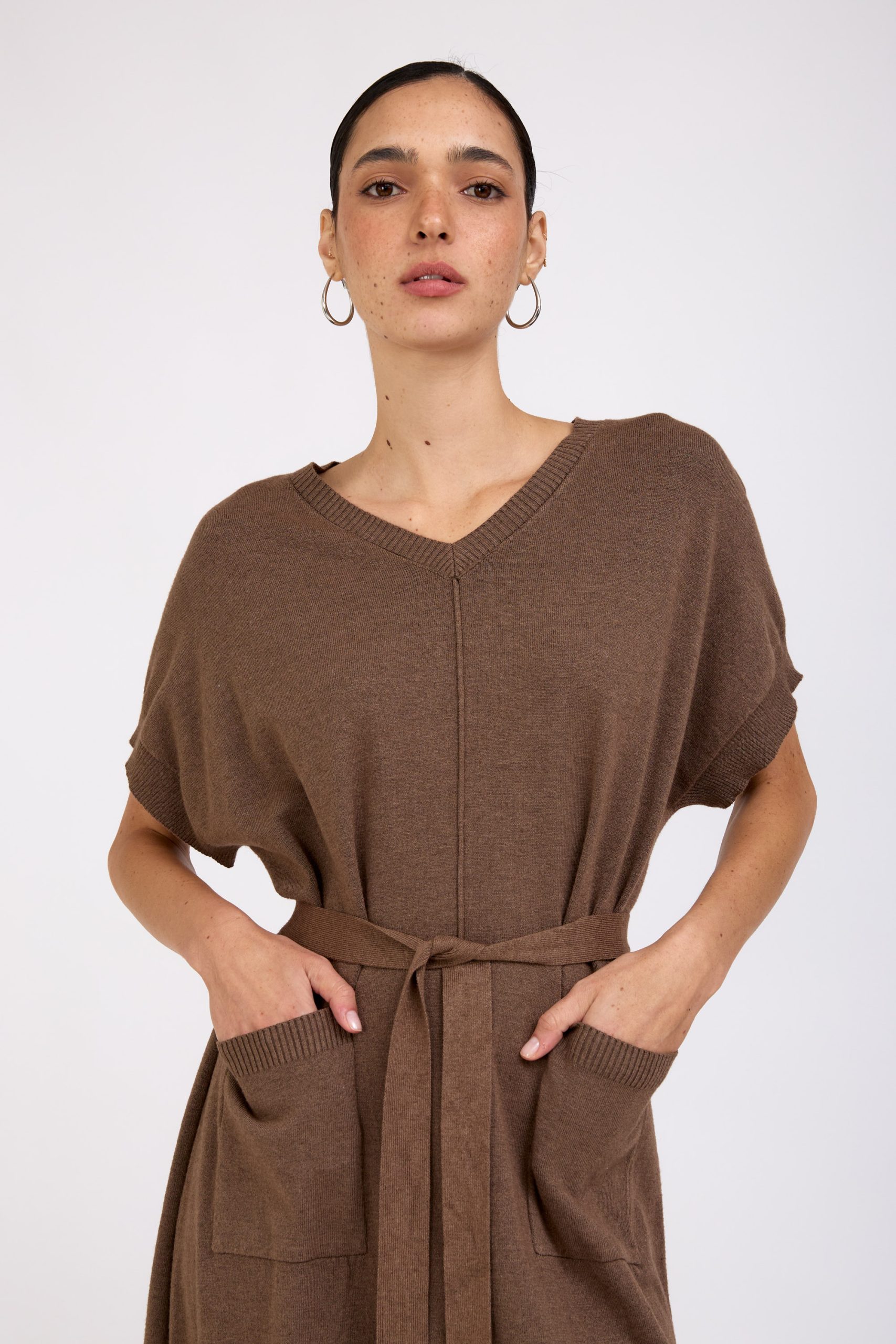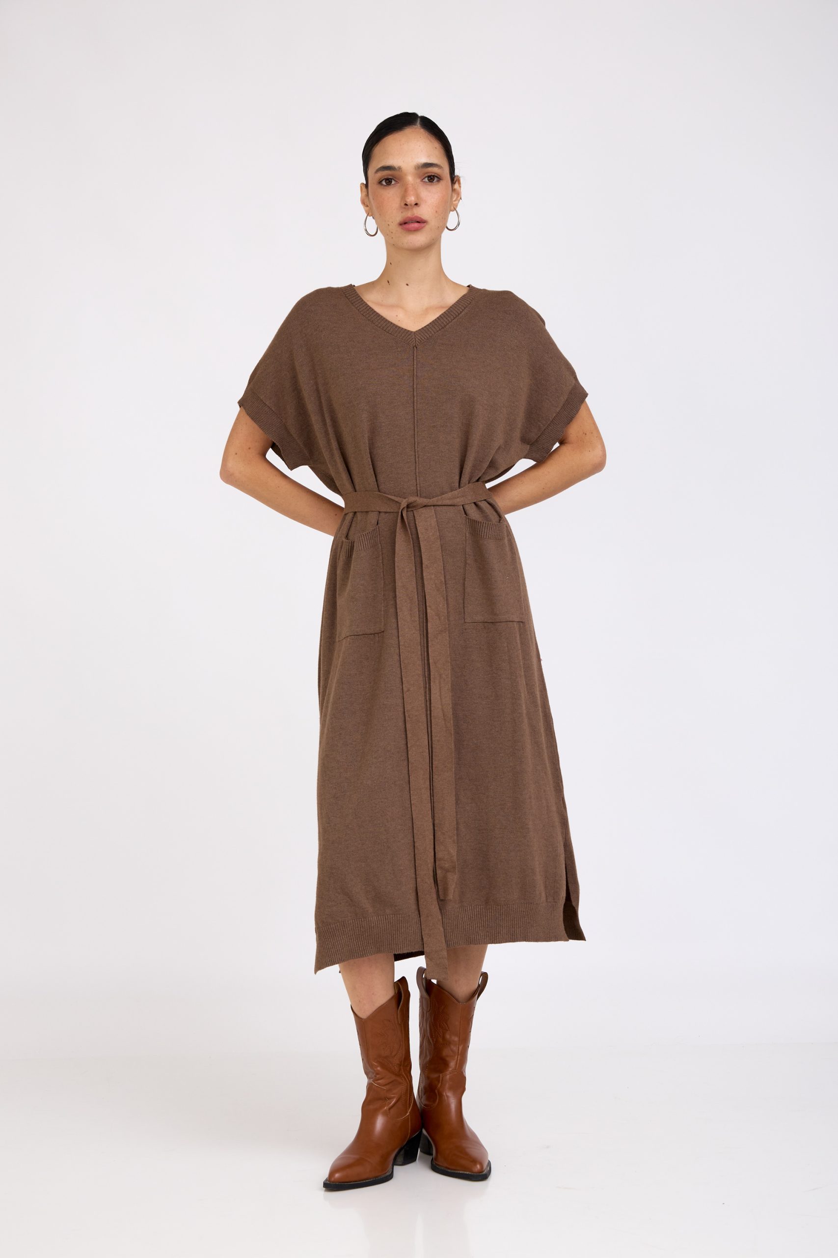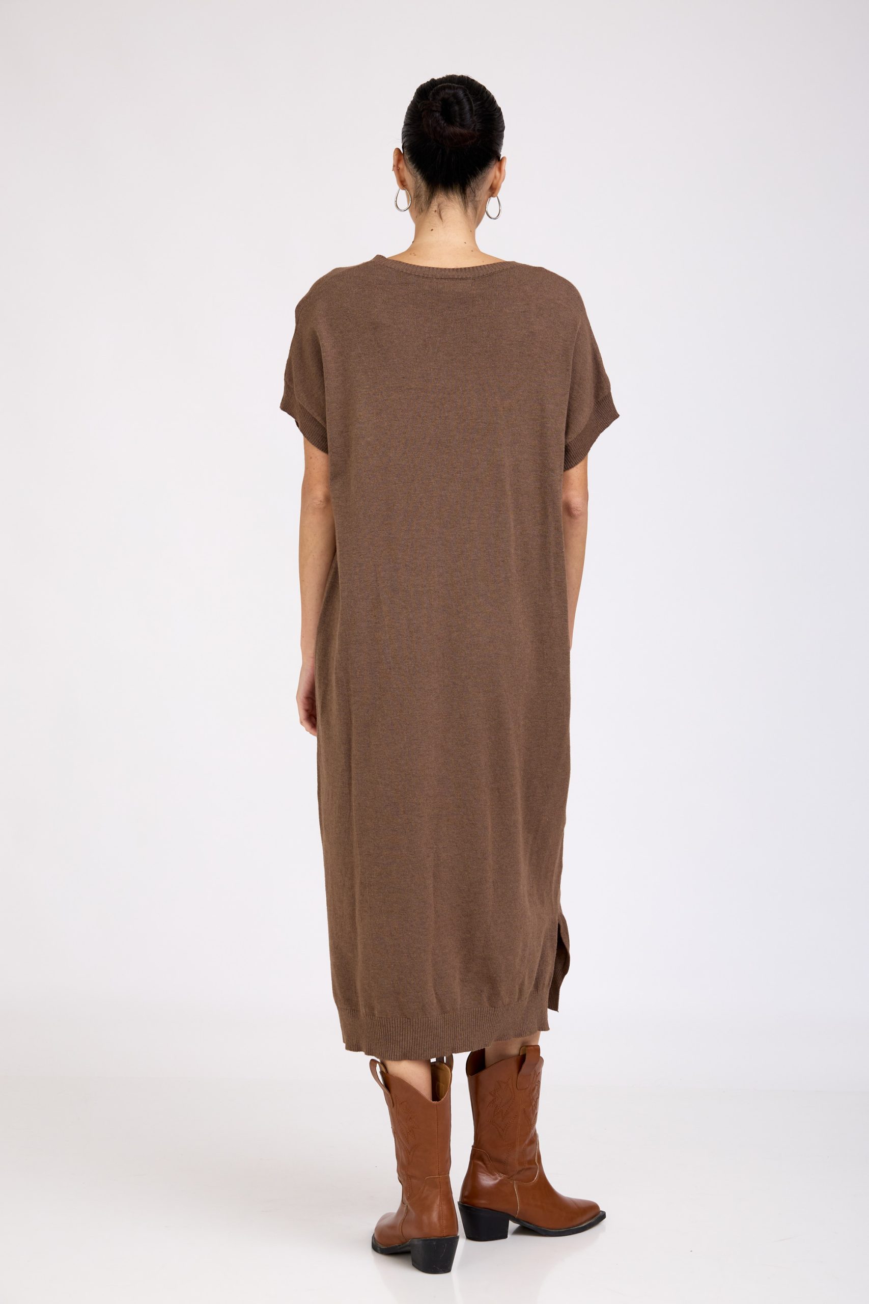 שמלת סריג דקה ורכה, בגזרה משוחררת ונעימה לגוף.
