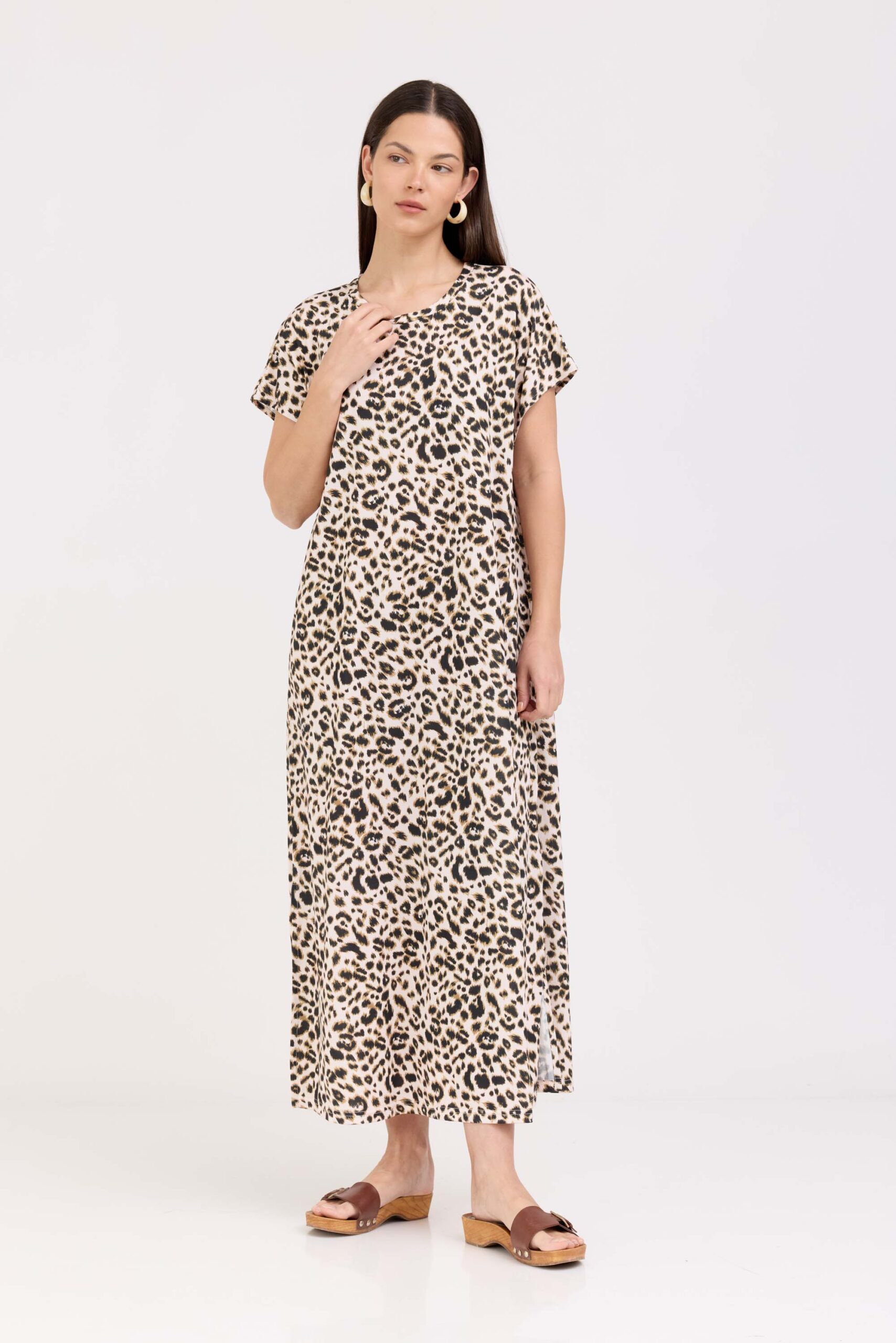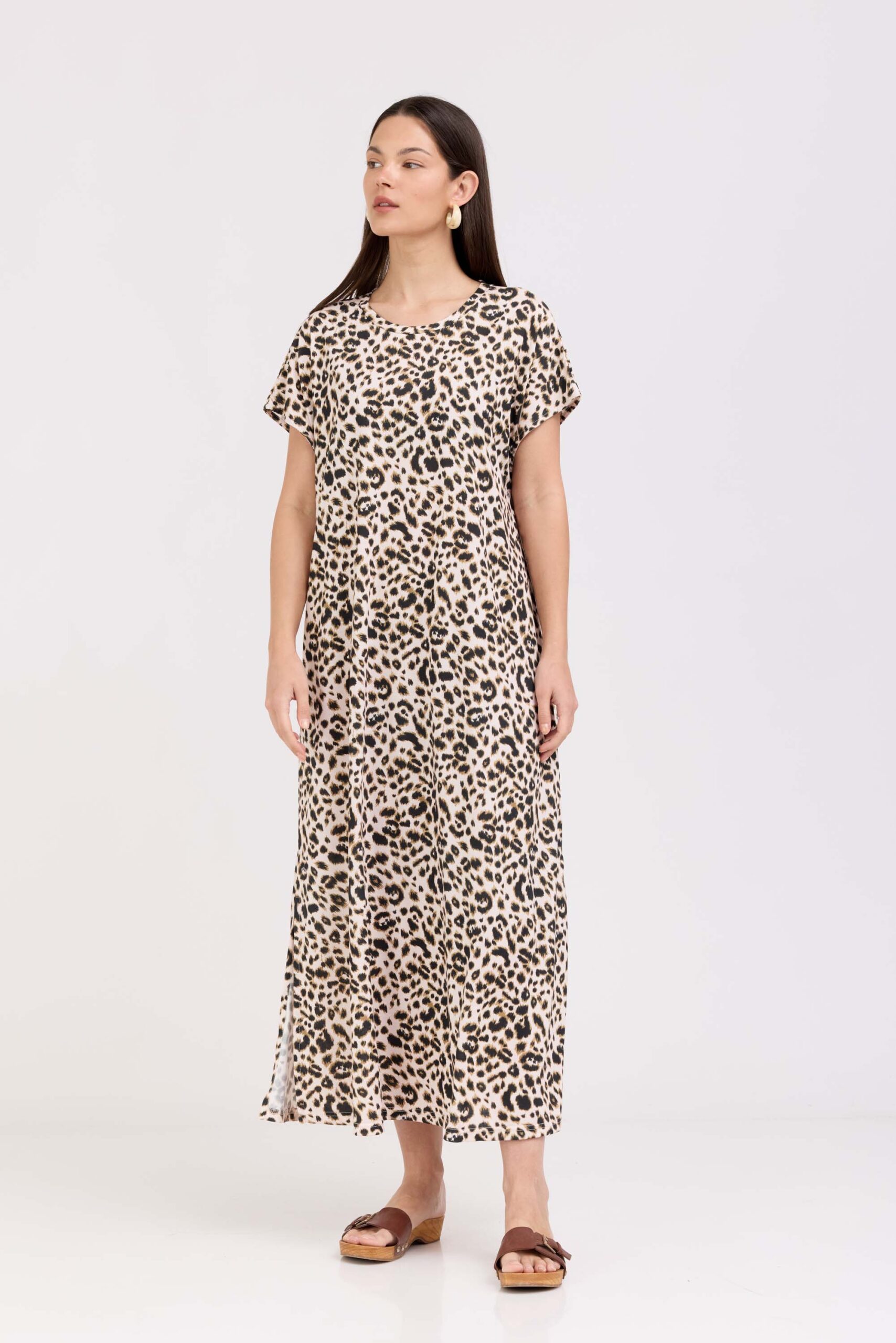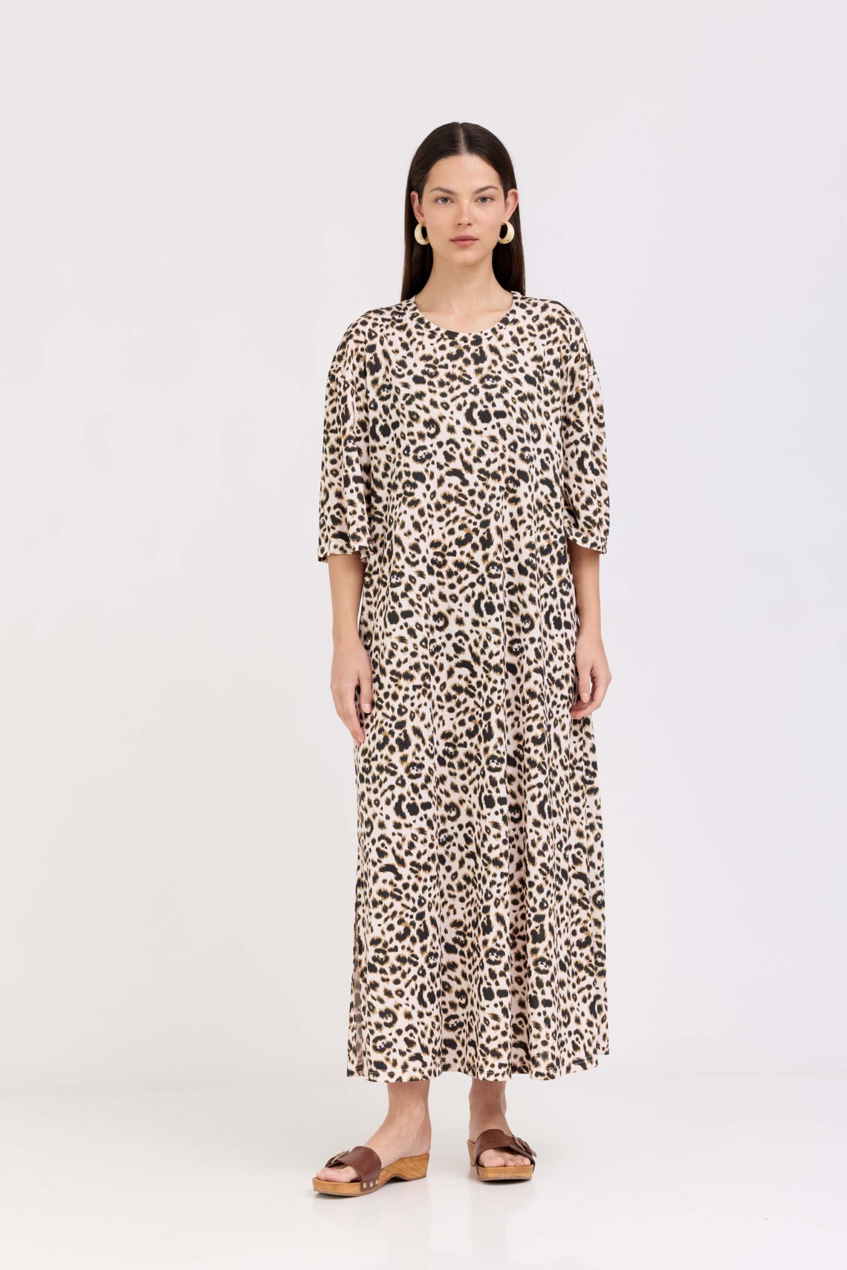 שמלת מקסי שירט מנומרת ועל זמנית,